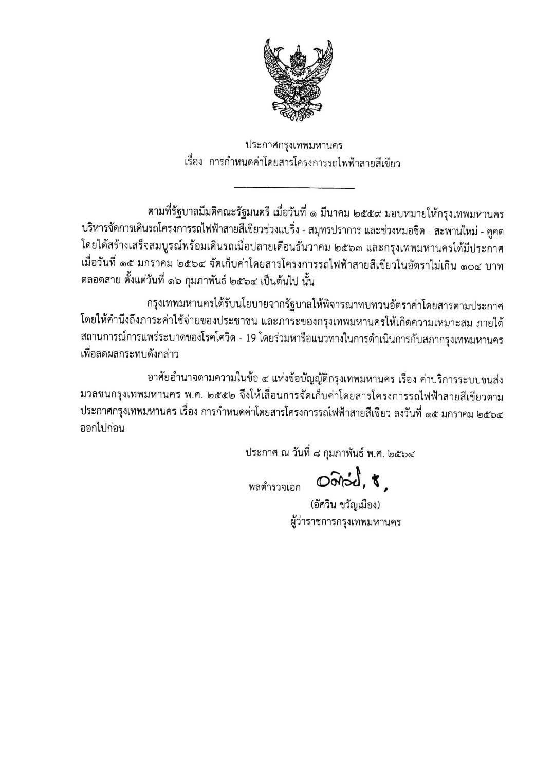 ชาวกรุงเฮ!!กทม.สั่งเลื่อนเก็บค่าโดยสาร รถไฟฟ้าสายสีเขียวต่อขยายไม่มีกำหนด
