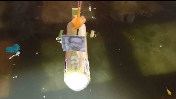 ปราจีนบุรี-กระทงเรือดำน้ำ ลอยรูป “นายกตู่”หรา !!! ขณะฝนตกส่งท้ายลอยกระทง ที่วัดหล...