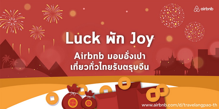Airbnbเปิดแคมเปญเที่ยวLuckพักJoy มอบอั่งเปาเที่ยวทั่วไทยรับตรุษจีน