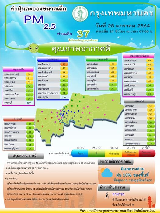 กทม.วันนี้อากาศดีฝุ่นPM2.5เกิน1พื้นที่