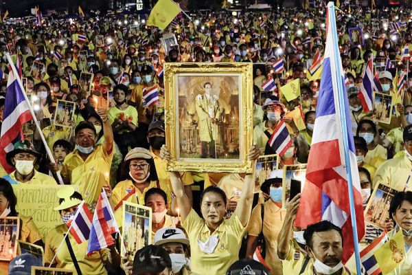 นครปฐม-ชาวนครปฐมราว 500 คน ในนามกลุ่มชาวนครปฐมปกป้องสถาบันใช้สถานที่องค์พระปฐมเจดีย์ สวมเสื้อเหลืองพร้อมเดินชูพระบรมฉายา...
