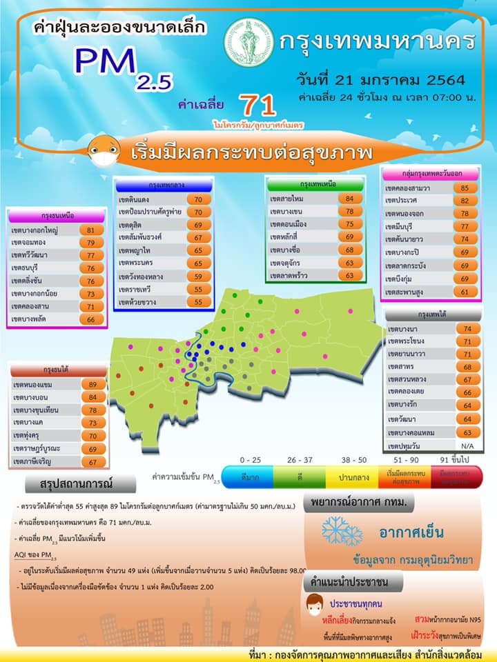 กทม.วันนี้อากาศไม่ดีPM2.5เกิน69พื้นที่