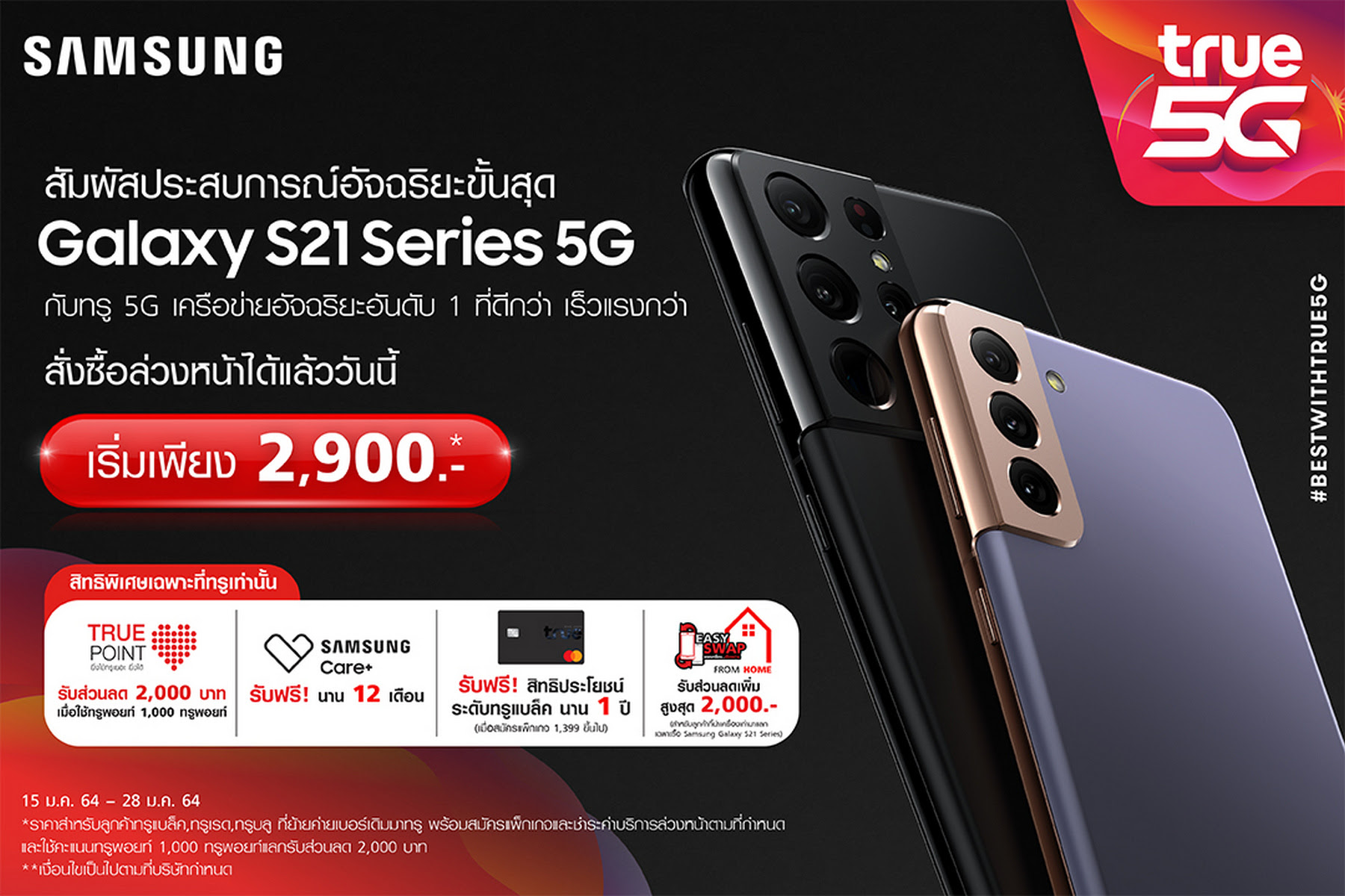 ทรู5Gส่งสุขรับปีวัวทองจองสมาร์ทโฟน SamsungGalaxyS21-28 มค.ที่ทรูช็อป