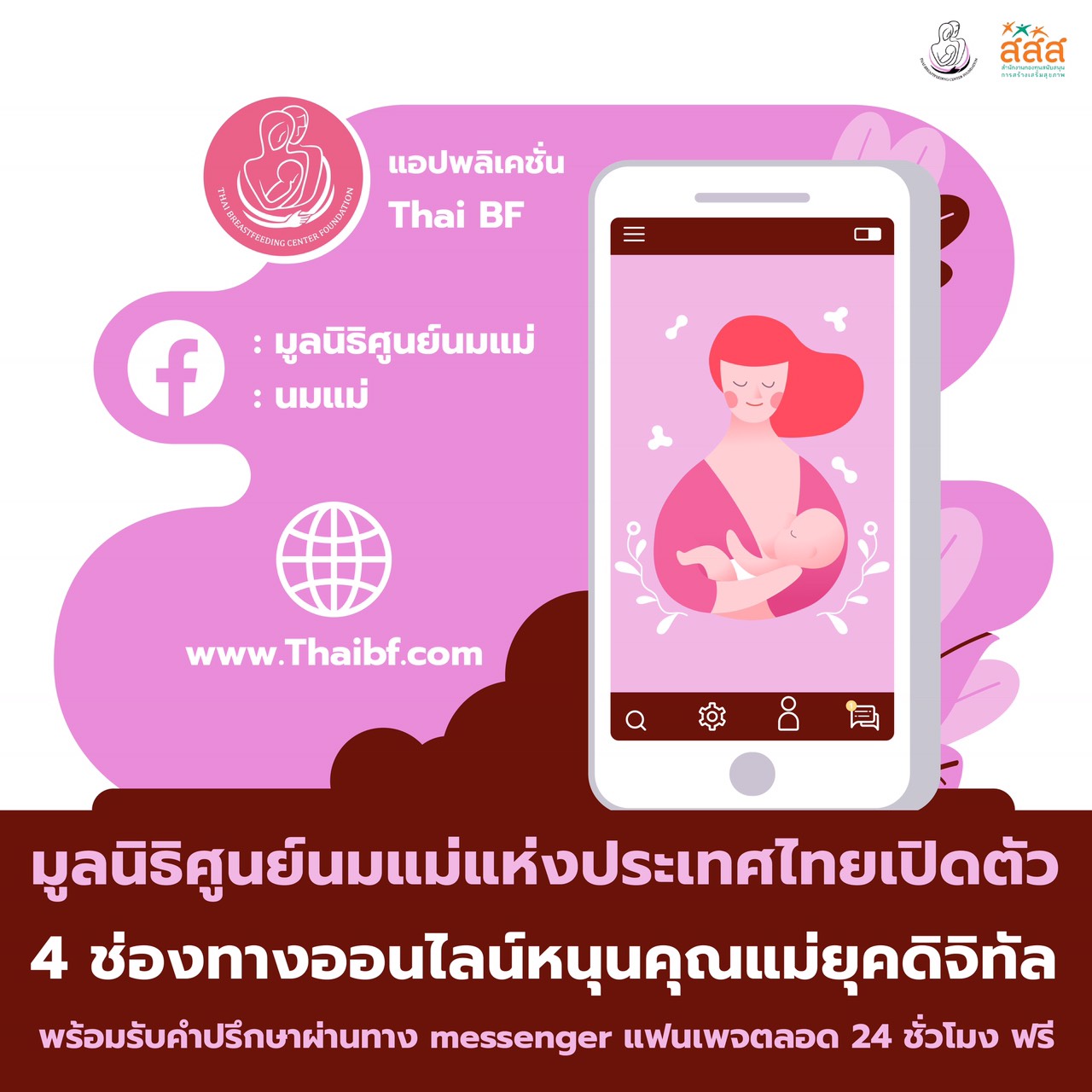 กรุงเทพฯ-มูลนิธิศูนย์นมแม่แห่งประเทศไทย (Thai Breastfeeding CenterFoundation) เปิดตัว 4 ช่องทางสื่อสารออนไลน์ รู้ ครบ จบ...
