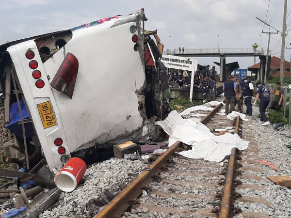 รถกฐินมรณะซิ่งตูม!!!รถไฟบรรทุนสินค้า ดับคาที่18ศพบาดเจ็บ29ราย