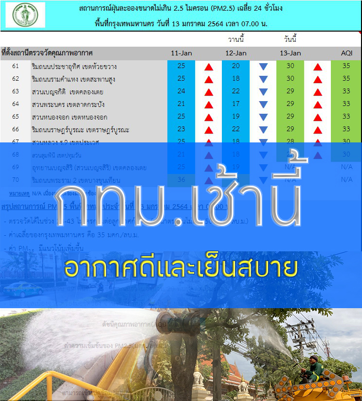 กทม.เช้านี้อากาศดีมีPM2.5ต่ำทุกพื้นที่