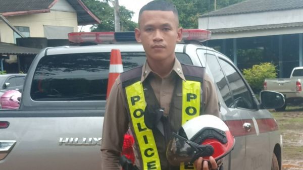 แม่ค้าสาวโพสต์รูปผู้หมู่ตำรวจจราจร เอาใบตาลแห้งบังฝนแทนร่ม ขณะที่โบกรถเพื่อให้นักเรียนข้ามถนนท่ามกลางสายฝนหนั...