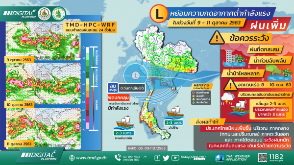เตือนช่วง10-11 ตุลาคมนี้ ประเทศไทยยังมีฝนตกต่อเนื่อง จากร่องมรสุมพาดพาดผ่านภาคกลางตอนล่าง ตะวันออก ภาคใต้ตอนบน จะมีฝนตกห...
