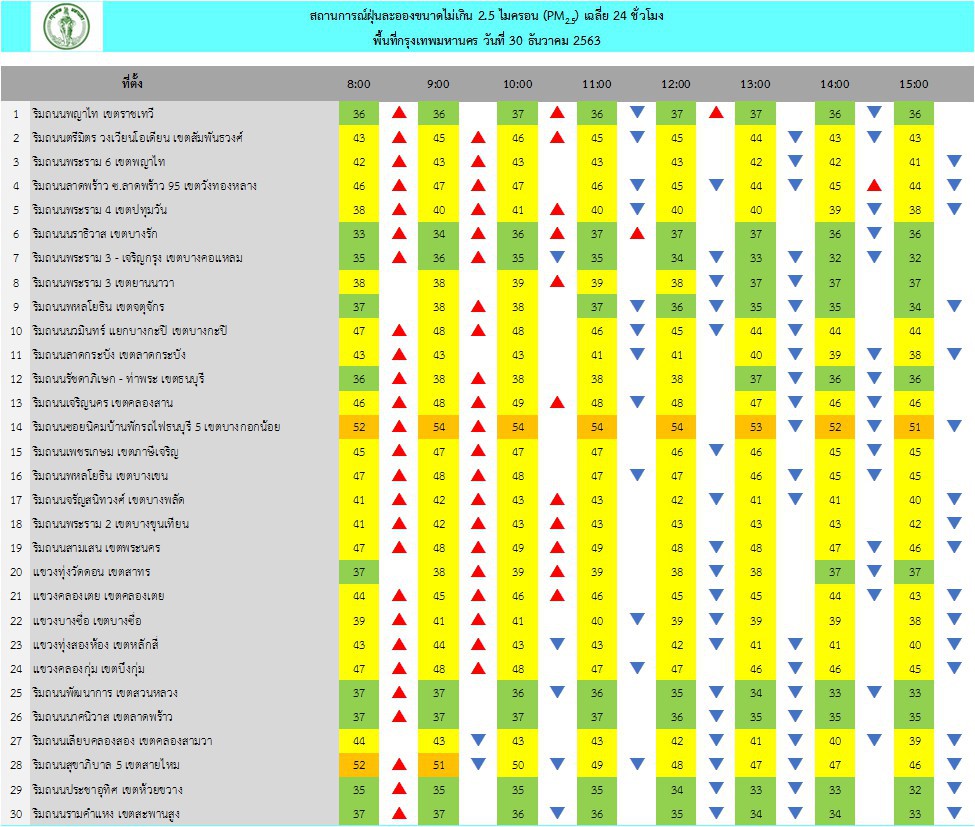 กรุงเทพฯ-สรุปสถานการณ์ฝุ่นละอองPM2.5 ในพื้นที่กรุงเทพฯ พบว่าผลการตรวจวัดPM2.5 ดีขึ้นค่าเฉลี่ยอยู่ที่ 39.1มคก./ลบ.ม.