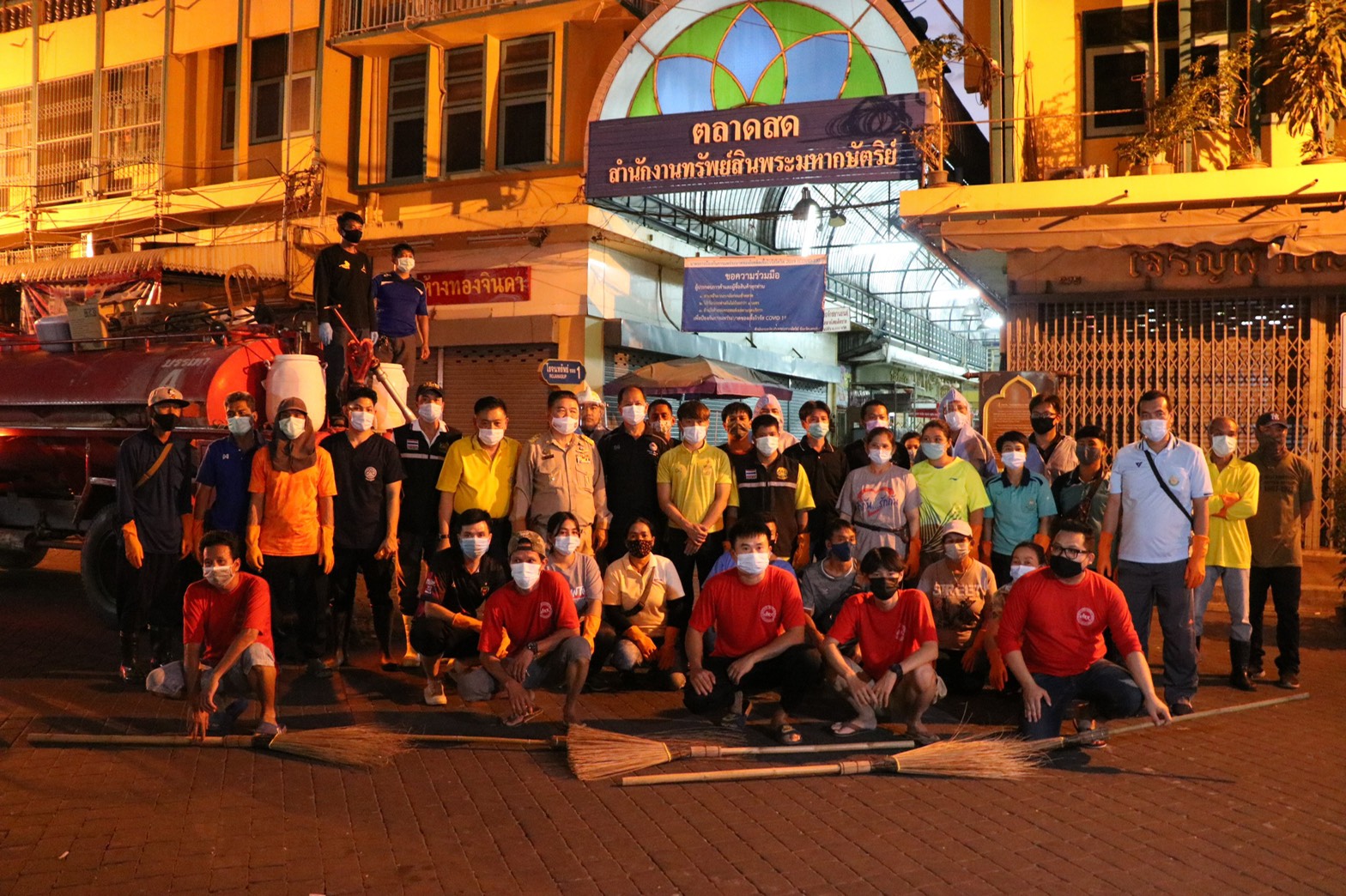 เทศบาลนครปฐมลุยล้างตลาดทรพย์สินฯ บูรณาการเจ้าหน้าที่ล้างเชื้อโควิด-19