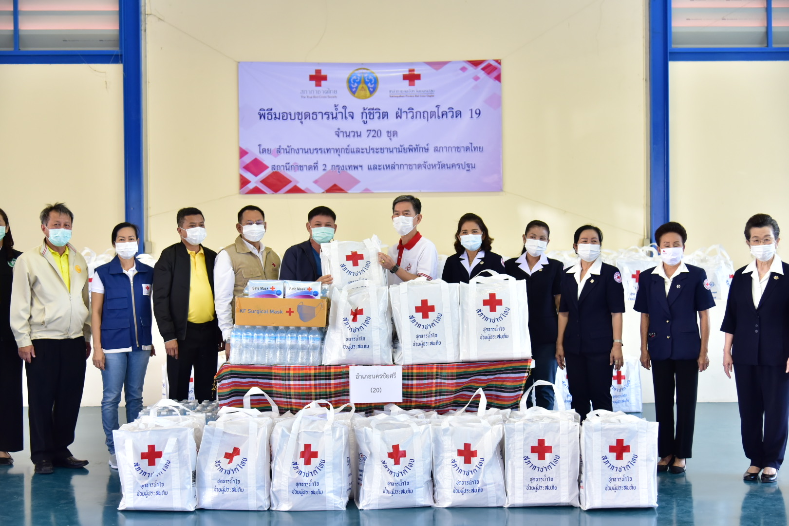กาชาดนครปฐมมอบถุงยังชีพธารน้ำใจ ให้กับผู้ได้รับผลกระทบโควิด-19
