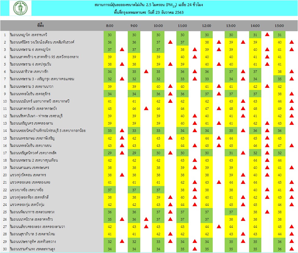 กรุงเทพฯ-ศูนย์ประสานงาน และแก้ไขปัญหามลพิษทางอากาศของกรุงเทพมหานคร ขอสรุปผลการตรวจวัด PM2.5 เวลา 13.00-15.00 น. (3 ชั่วโ...