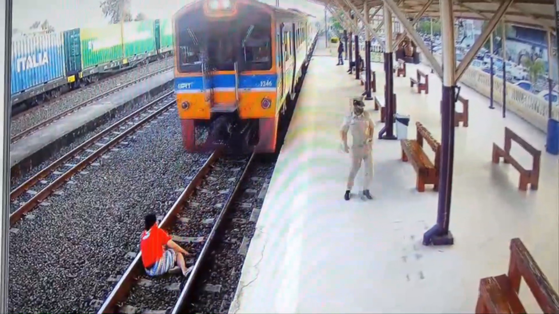 อุดรธานี-เปิดภาพวงจรปิดนาทีชีวิต ป้าอุดรฯ เดินลงมาให้รถไฟทับร่าง หวังจะฆ่าตัวตาย แต่โชคดีแค่บาดเจ็บ