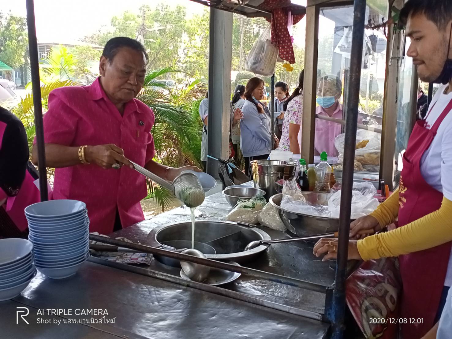 นายกฯทต.หนองแคสวมบทพ่อครัวเก่า โชว์ทำก๋วยเตี๋ยวเลี้ยงคณะอสม.-จนท.