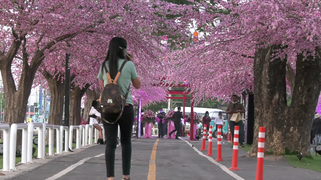 นครราชสีมา-เปิดแล้วแลนมาร์คจุดถ่ายรูปต้นซากุระ 44 ต้นนักท่องเที่ยวแห่เซลฟี่ต้อนรับหน้าหนาวเมืองโคราช