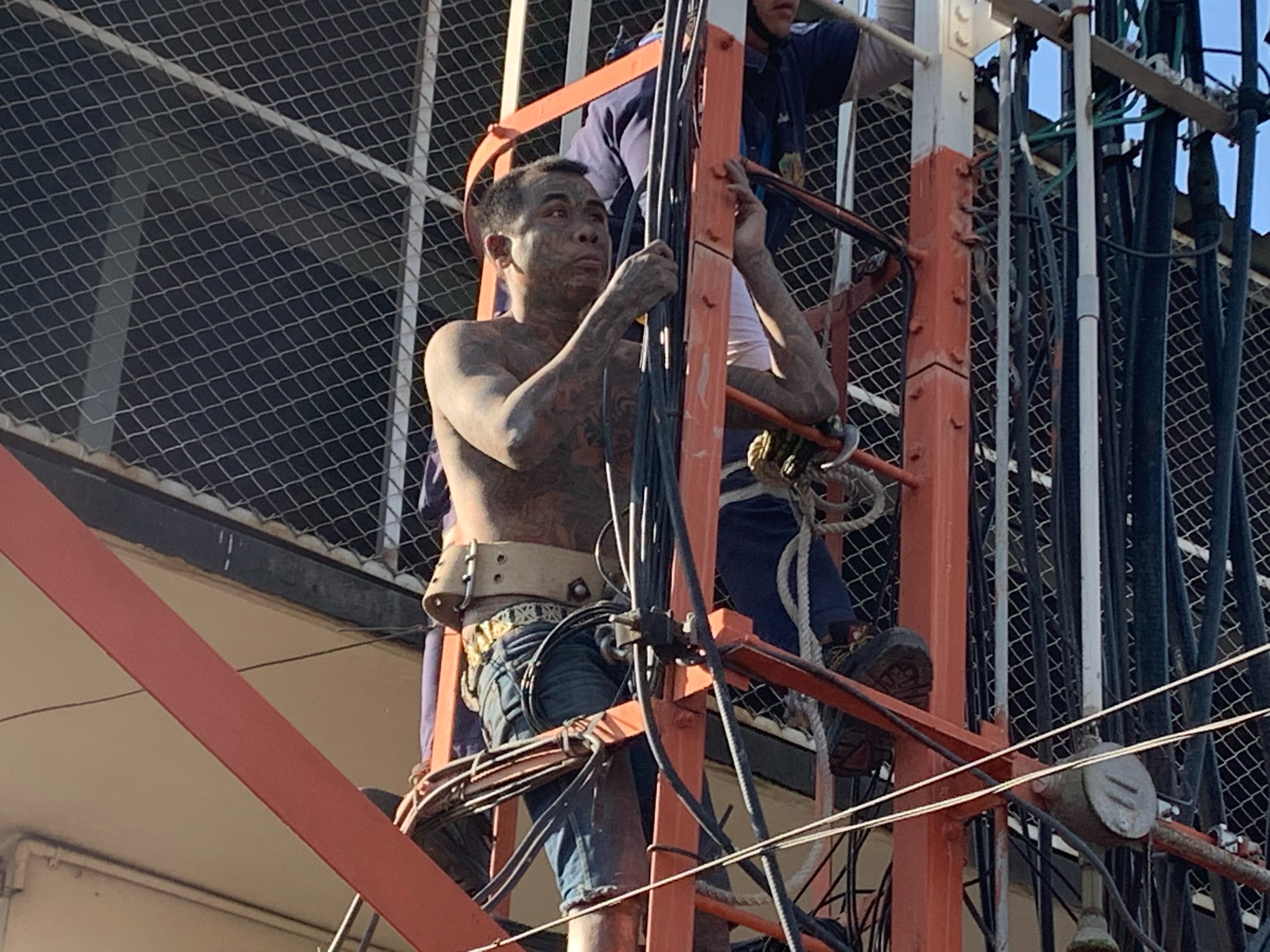 หนุ่มป่วยจิตเวชเกิดคลั่งปีนเสาโทรศัพท์ กู้ภัย-ญาติเกลี้ยกล่อมนับชั่วโมงยอมลง