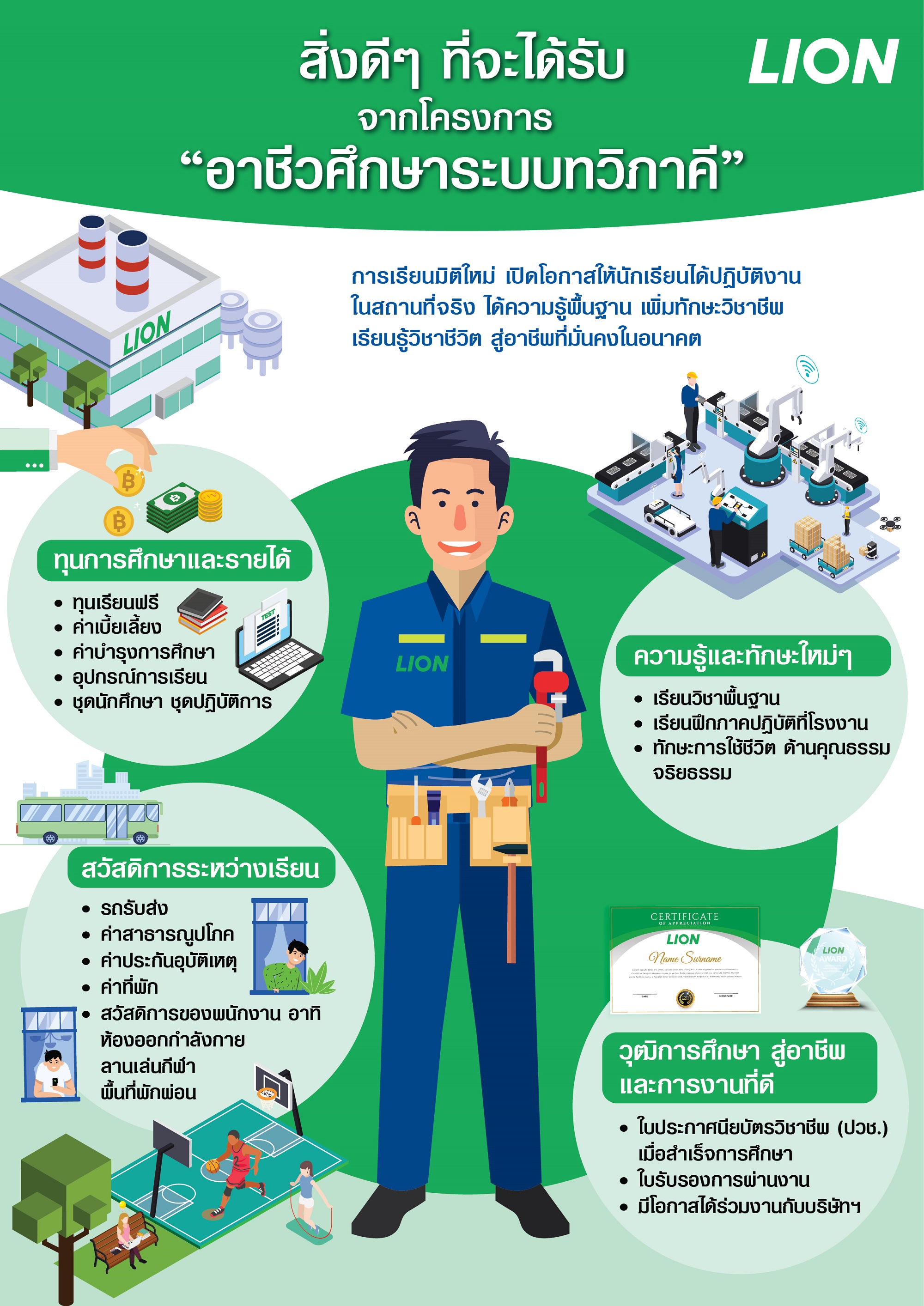 ไลอ้อนหนุนเยาวชนร่วมโครงการสำคัญ 'อาชีวศึกษาระบบทวิภาคี'รู้คู่คุณธรรม