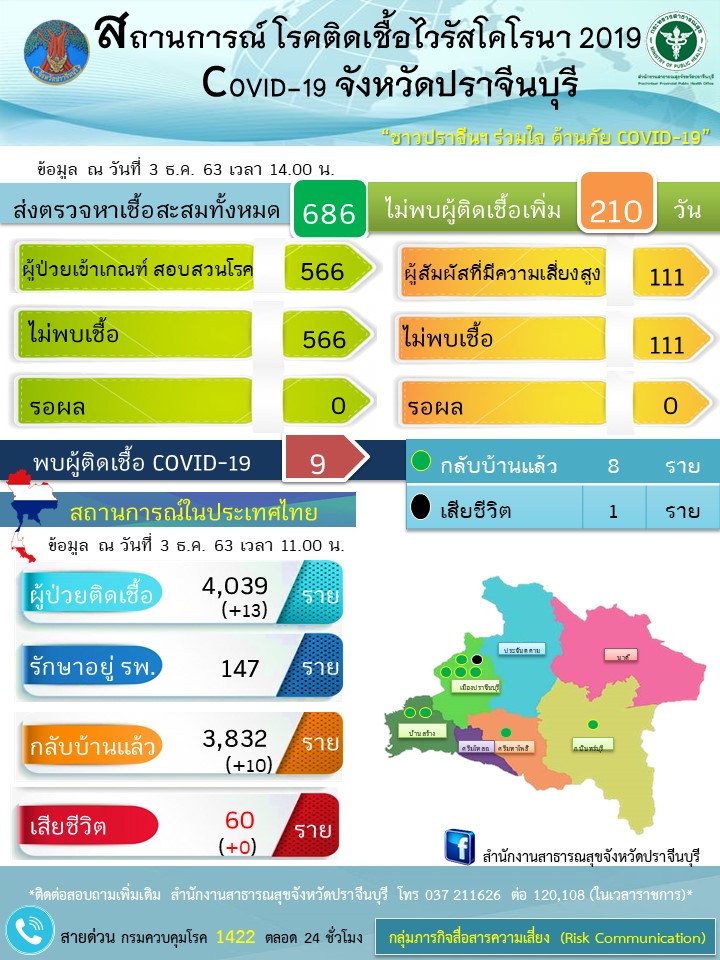 ลือสนั่น!พบผู้ติดเชื้อโควิด-19ถึง3รายสสจ.ปราจีนเตือนห้ามแชร์ผิดพรบ.คอมฯ