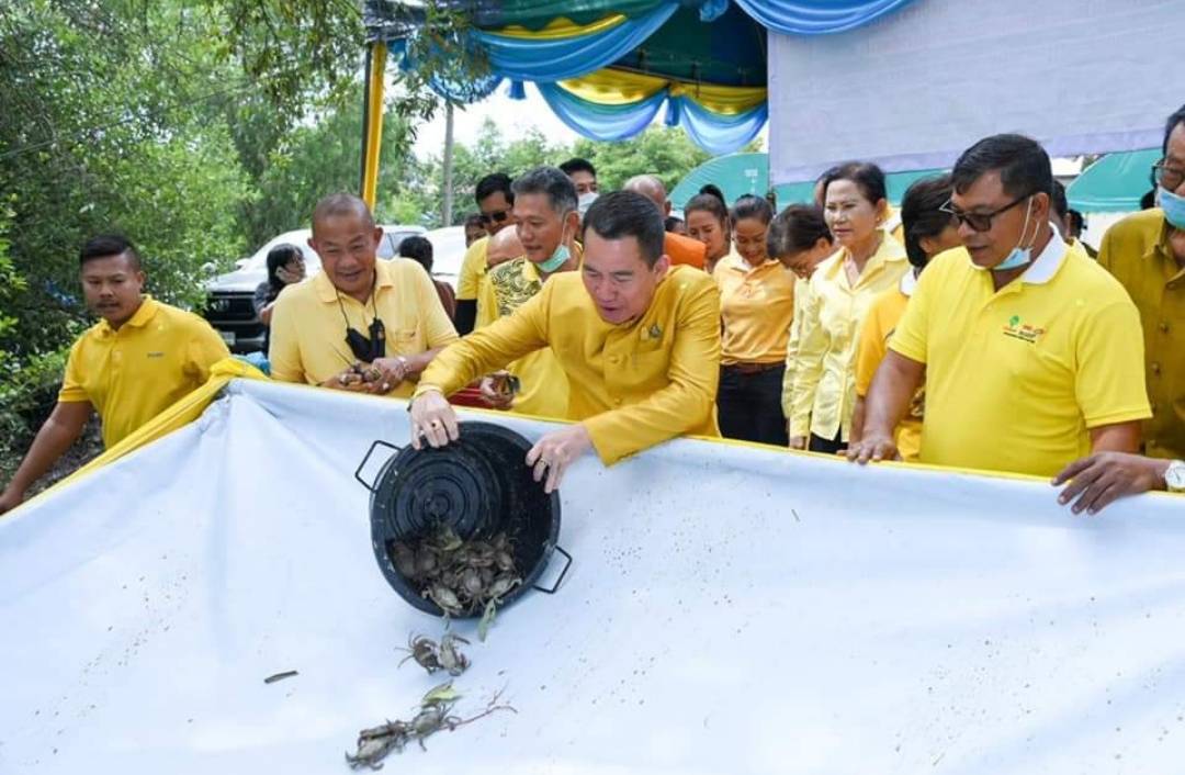 ผู้ว่าฯแปดริ้วเปิดปล่อยปูฟื้นฟูระบบนิเวศ ถวายเป็นพระราชกุศลในหลวงรัชกาลที่9