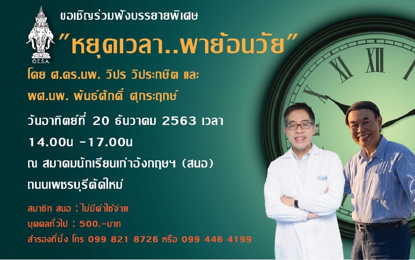ส.นักเรียนเก่าอังกฤษชวนฟังบรรยาย 'หยุดเวลา...พาย้อนวัย'อาทิตย์20ธ.ค.นี้