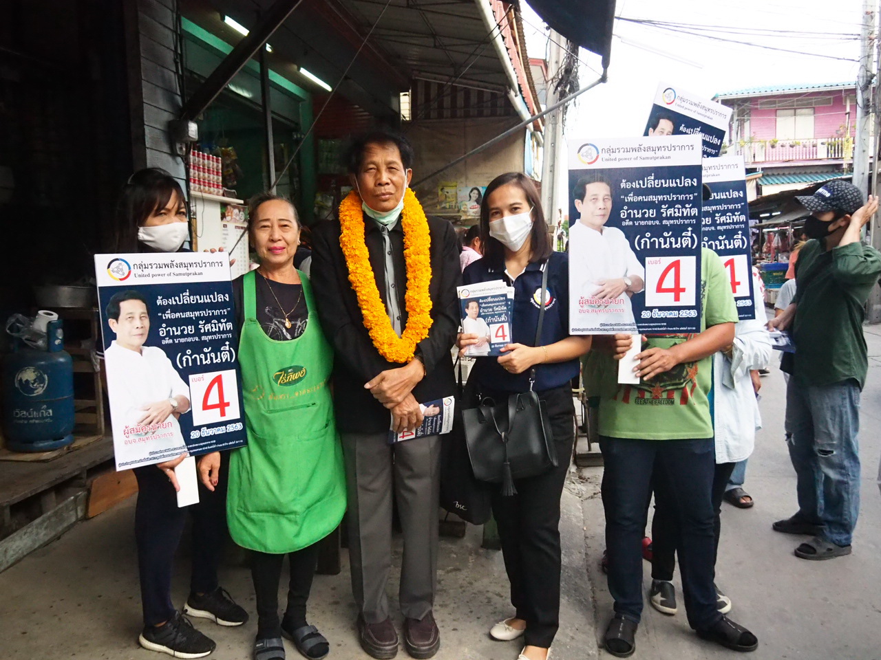 สมุทรปราการ-'อำนวย รัศมิทัต' ผู้สมัครนายกอบจ.สมุทรปราการลุยหาเสียงตลาดคลองด่าน พบปะบรรดาแม่ค้าพ่อค้า ได้รับการตอ...