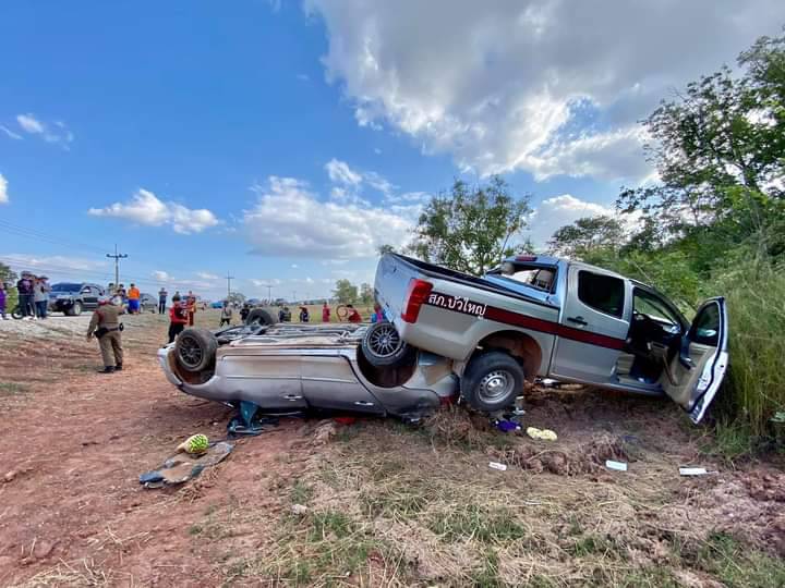 นครราชสีมา-เอาจนอยู่หมัดตำรวจโคราชไล่ล่าโจรขโมยรถพลาดท่าพลิกคว่ำข้างทางทั้งรถโจรรถตำรวจเจ้าของรถพบถึงกับผงะพังทั้งคัน