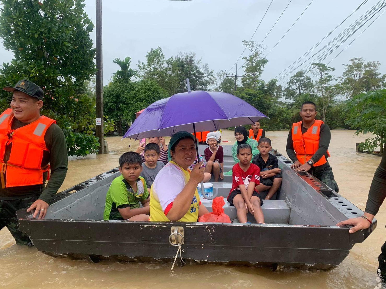 พัทลุง-คืบหน้าฝนตกหนักต่อเนื่อง น้ำป่าไหลหลาก เจ้าหน้าที่ทหารเร่งช่วยเหลือหนูน้อยจำนวน7คน ที่ติดอยู่ภายในอนามัยอย่างเร่ง...