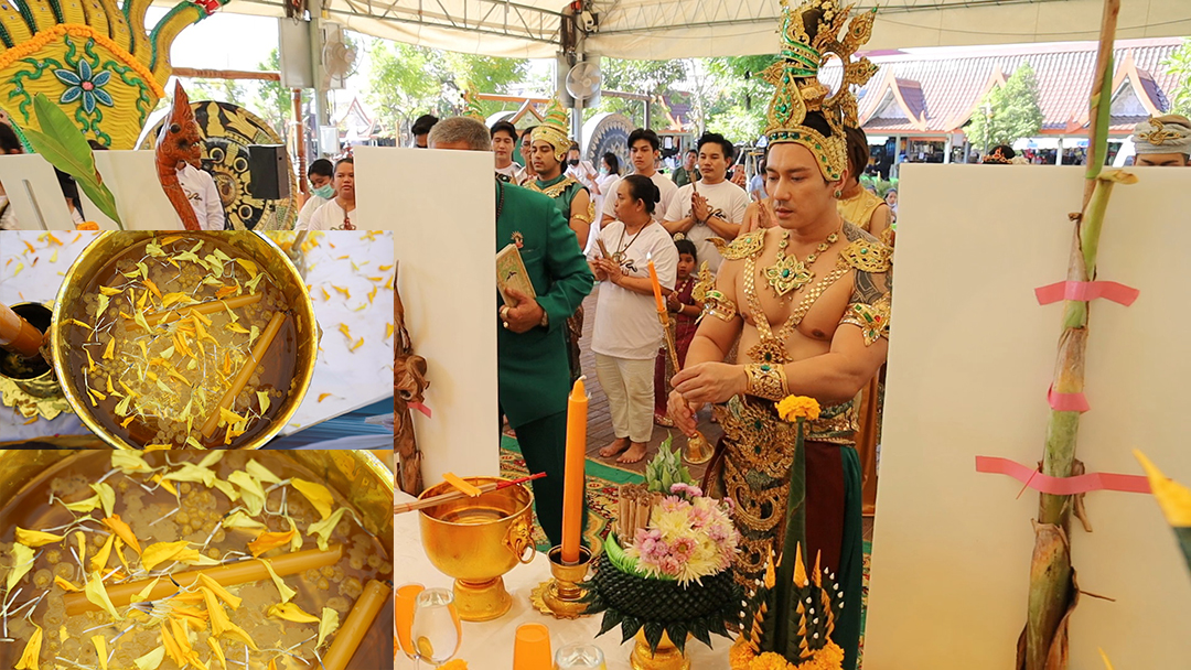 กรุงเทพฯ-ส่องเลขในขันธ์น้ำมนต์ พิธีบวงสรวงภาพยนตร์รักบุญบารมี เรื่อง"สัญญานาคราช"