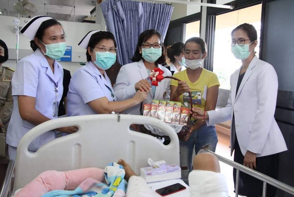 นายกกาชาดแปดริ้วเยือนเด็กถูกไฟลวก อาการสาหัสทั้งขาแขนลำตัวอวัยวะเพศ