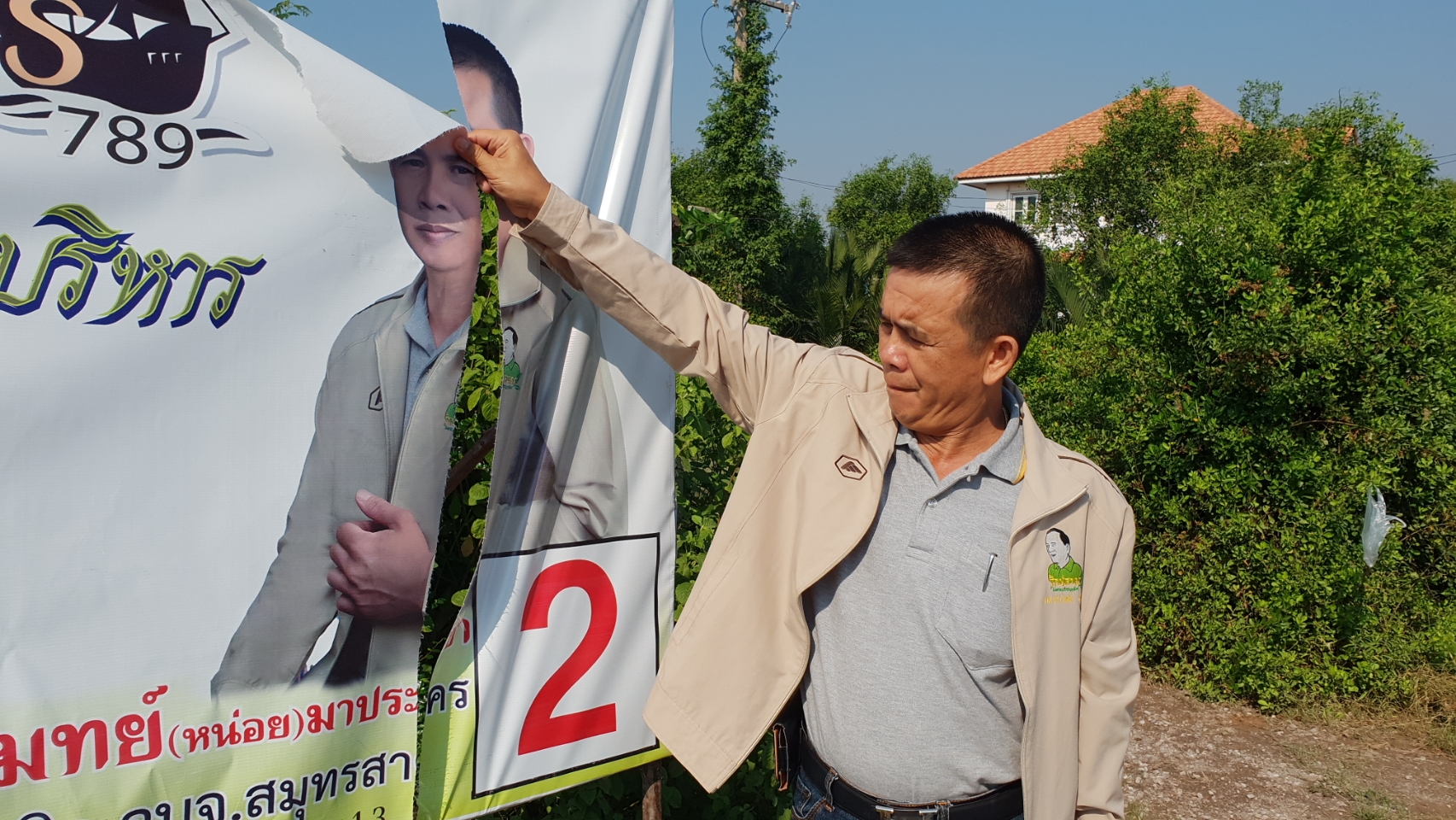 เลือกตั้งอบจ.สมุทรสาครเริ่มไม่ดีมีพังป้ายทีมรักษ์สาครขอเลิกเล่นการเมืองแบบเก่า