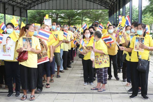 กำนัน-ผญบ.พระสมุทรเจดีย์แสดงพลัง ใส่เสื้อเหลืองปกป้อง'ชาติ-ศาสน์-กษัตริย์'