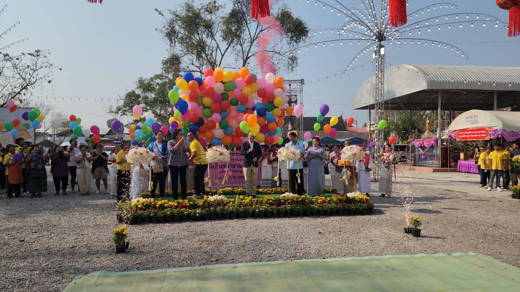 ปล่อยลูกโป่งเปิดงานปิดทองฝังลูกนิมิต วัดอินทรารามต้อนรับเทศกาลตรุษจีน