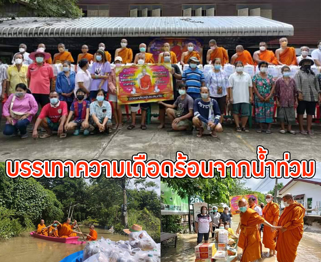 พระสงฆ์คณะจังหวัดมอบข้าวสารอาหาร ให้แก่ผู้ประสบภัยน้ำท่วม