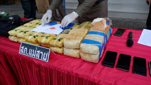 เมื่อเวลา 15.00 น.วันที่ 2 พ.ย.63 ตำรวจภูธรภาค 5 โดยพล.ต.ท.ประจวบ วงศ์สุขผู้บัญชาการตำรวจภูธร ภาค ถ, พล.ต.ต.ชินวิช วิชัยธนพัฒน์ ผบก.ภ.จว.เชียงราย,พล.ต.ตวีรชน บุญทวี ผบก.สส.ภ.5 , พ.ต.อ.วรพงศ์ คำลือ รอง ผบก.สส.ภ.5 , พ.ต.อ.พงษ์สวัสดิ์ ไชยบาล รอง ผบก.ภ.จว.เชียงราย , พ.ต.อ.มานพ เสนากุล รอง ผบก.ภ.จว.เชียงราย , พ.ต.อ.รัฐพล น้อยช่างคิด ผกก.สส.ภ.จว.เชียงราย , พ.ต.อ.ถนัด ชุ่มมะโน รอง ผกก.สส.ภ.จว.เชียงราย , พ.ต.อ.เอกณสันต์ ศรีสองเมือง ผกก.สภ.แม่สาย ,พ.ต.ท.ชาญพิสุทธิ์ ณัฐพงษกรณ์ รอง ผกก.ป.สภ.แม่สาย แถลงการณ์จับกุม ผู้ต้องหา 4 คน คือ 1. นายหนึ่ง(นามสมมุติ) อายุ 18 ปี ชาว อ.แม่สาย จ.เชียงราย 2. นายนนทชัย นวลศรี อายุ 20 ปี ที่อยู่ 86 หมู่3 ต.โป่งผา อ.แม่สาย จ.เชียงราย 3.ดช.สอง (นามสมมุติ) อายุ 14 ปี ชาว อ.แม่สาย 4. นายบุญมาก นามเจ้า อายุ 22 ที่อยู่ ชาว ต.โป่งผา อ.แม่สาย จ.เชียงราย โดยพฤติกรรม ทราบว่ามักมีการลักลอบขนส่งยาเสพติดไปกับบริษัทขนส่งพัสดุเอกชนชื่อดังใน ต.ห้วยไคร้ อ.แม่สาย จ.เชียงราย จึงไปเฝ้าสังเกตการณ์ ต่อมาสามารถยึดห่อพัสดุ ภายในซุกซ่อนยาบ้า 98,000 เม็ด และ ไอซ์ 3 ก.ก.เมื่อวันที่ 31 ส.ค.63 ซึ่งทราบว่าเกี่ยวข้องกับกลุ่มนี้ 2 คน