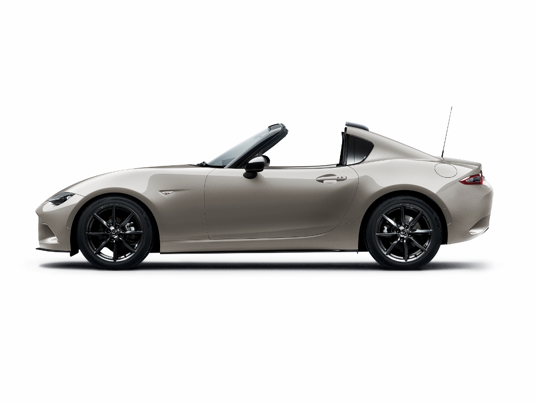 นอกจากนี้ อีกหนึ่งเหตุผลสำคัญในการพัฒนา New Mazda MX-5คือเพื่อให้มีเอกลักษณ์และโดดเด่นยิ่งขึ้น ด้วยสีภายนอกใหม่ล่าสุด สีบรอนซ์ แพลตทินั่ม ควอตซ์ที่กำลังได้รับความนิยมอยู่ในขณะนี้ ซึ่งเป็นสีที่แสดงออกถึงความมีคุณภาพสูง ให้ความรู้สึกหรูหราทรงพลัง และสง่างาม ด้วยผลึกกึ่งโปร่งแสงจากควอตซ์ที่ขาวละเอียด นวลเนียนและสะท้อนตัวตนอันมีเอกลักษณ์ของผู้ขับขี่ที่แตกต่างไม่ซ้ำใครที่ผสานอย่างลงตัวกับการออกแบบตามแนวคิด โคโดะ ดีไซน์หรือการเคลื่อนไหวอันสง่างามของการออกแบบภายนอกตัวรถที่ต้องตาต้องใจผู้พบเห็นจนยากจะละสายตาการออกแบบภายนอกของ New Mazda MX-5 ยังคงมีความสปอร์ต ทันสมัยมาพร้อมเทคโนโลยีไฟหน้าแบบ LED Projector และไฟส่องสว่างสำหรับการขับขี่เวลากลางวันDaytime Running Lamp ตกแต่งด้วยล้ออัลลอยขนาด 17 นิ้ว สีดำเมทัลลิคพร้อมคิ้วบันไดกันรอยสเตนเลส