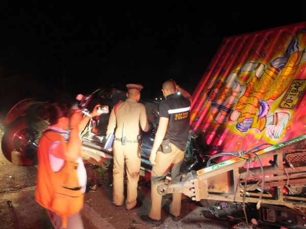 ระวังภัย!ฝนตกถนนลื่นพ่วง18ล้อเขมร เก๋งสวนทางเบรกกะทันหันสาหัส1ตับ1