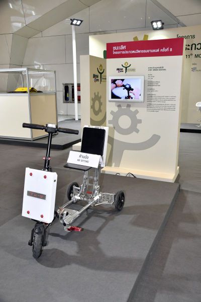 ผลงาน พาหนะส่วนบุคคลพับได้ (TINY URBAN SCOOTER) รับรางวัลชนะเลิศ การประกวด ครั้งที่ 8 โดย วัศพล สินทรัพย์ เมธัส น้ำผุด มหาวิทยาลัยธรรมศาสตร์