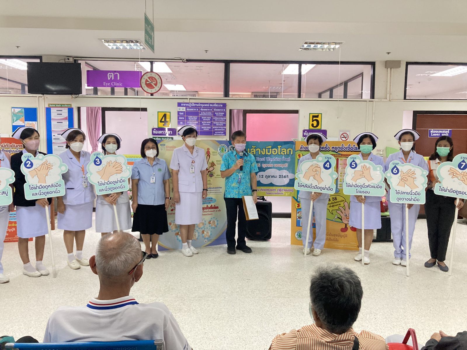 เมื่อเวลา 09.30 น. วันที่ 12 ตุลาคม 2565 ณ ลานหน้าห้องตรวจ OPD ตา ชั้น 3 อาคารอำนวยการ โรงพยาบาลศรีสะเกษ นายแพทย์นิมิตร เลิศพัฒนสุวรรณ รองผู้อำนวยการภารกิจด้านบริการปฐมภูมิ โรงพยาบาลศรีสะเกษ เป็นประธานเปิดกิจกรรมวัน ล้างมือโลก ประจำปี 2565 “รวมกันเป็นหนึ่งเพื่อสุขอนามัยของมือ” รณรงค์การล้างมือของบุคลากรในโรงพยาบาล ผู้มารับบริการ เพื่อกระตุ้นให้บุคลากร และผู้มารับบริการในโรงพยาบาลศรีสะเกษ มีวัฒนธรรมในการล้างมือเพิ่มมากขึ้น ซึ่งเป็นการป้องกันเชื้อโรคที่สำคัญได้อีกทางหนึ่ง มีรองฝ่ายการพยาบาลโรงพยาบาลศรีสะเกษ หัวหน้างาน บุคลากร ผู้ป่วย ญาติ และผู้มารับบริการ ร่วมกิจกรรม