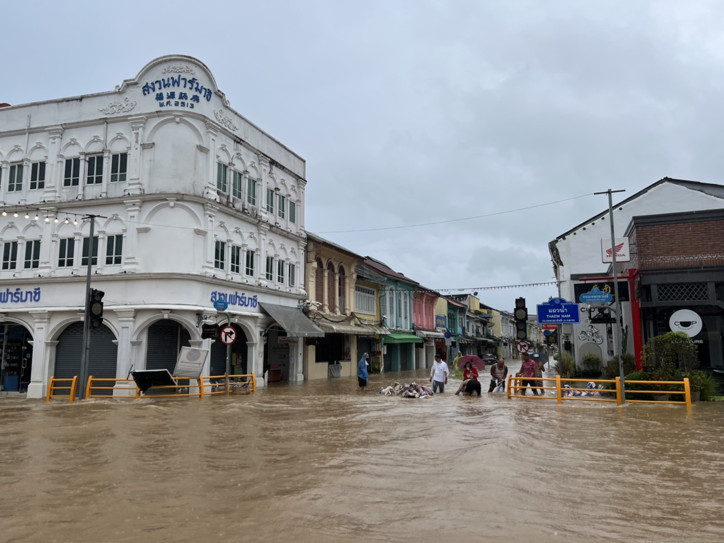 ภูเก็ตฝนตกทั้งคืนมีน้ำท่วมในหลายพื้นที่ บริเวณแลนด์มาร์กเมืองเก่าอาการหนัก