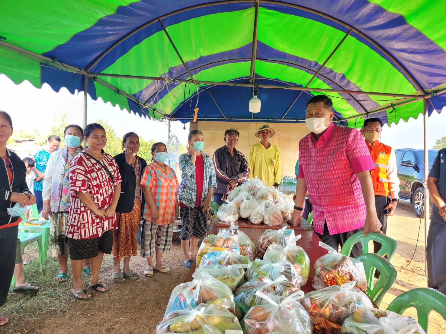 โอกาสนี้ ผู้ว่าราชการจังหวัดร้อยเอ็ด ได้นำคณะเดินทางไปตามพนังกั้นลำน้ำชี ตั้งแต่ อ.เชียงขวัญ ถึงอ.จังหาร เพื่อลงเยี่ยมประชาชนตามจุดพักพิงชั่วคราวผู้ประสบอุทกภัยที่ได้จัดตั้งขึ้นเพื่อช่วยเหลือดูแลคนในชุมชน จำนวน 5 จุด ได้แก่ จุดพักพิงบ้านแก่งขา ต.พระธาตุ อ.เชียงขวัญ จุดพักพิงบ้านไผ่ล้อม ต.เชียงขวัญ อ.เชียงขวัญ จุดพักพิงบ้านคุยขนวน ต.เชียงขวัญ อ.เชียงขวัญ จุดพักพิงบ้านคุยค้อ ต.ดินดำ อ.จังหาร และจุดพักพิงบ้านเริงทา ต.ดินดำ อ.จังหาร โดยได้พูดคุยให้กำลังใจแก่ประชาชน และกล่าวถึงสถานการณ์อุทกภัยที่เกิดขึ้น ซึ่งขณะนี้ระดับน้ำอยู่ในสภาวะทรงตัว และมีแนวโน้มจะลดระดับลงในระยะอันใกล้นี้ ทั้งนี้ผู้ว่าราชการจังหวัดร้อยเอ็ด ได้มอบไข่เป็ด ซึ่งได้รับการสนับสนุนจากองค์การบริหารส่วนตำบลช้างเผือก อำเภอสุวรรณภูมิ และน้ำดื่มสะอาด บรรจุแกลลอน แกลลอนขนาด 5 ลิตร จากกระทรวงทรัพยากรธรรมชาติและสิ่งแวดล้อมเพื่อช่วยเหลือบรรเทาความเดือดร้อนให้แก่ประชาชนตามจุดพักพิงดังกล่าวข้างต้น
