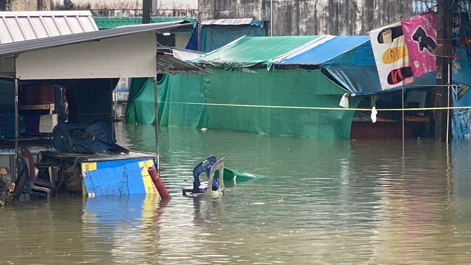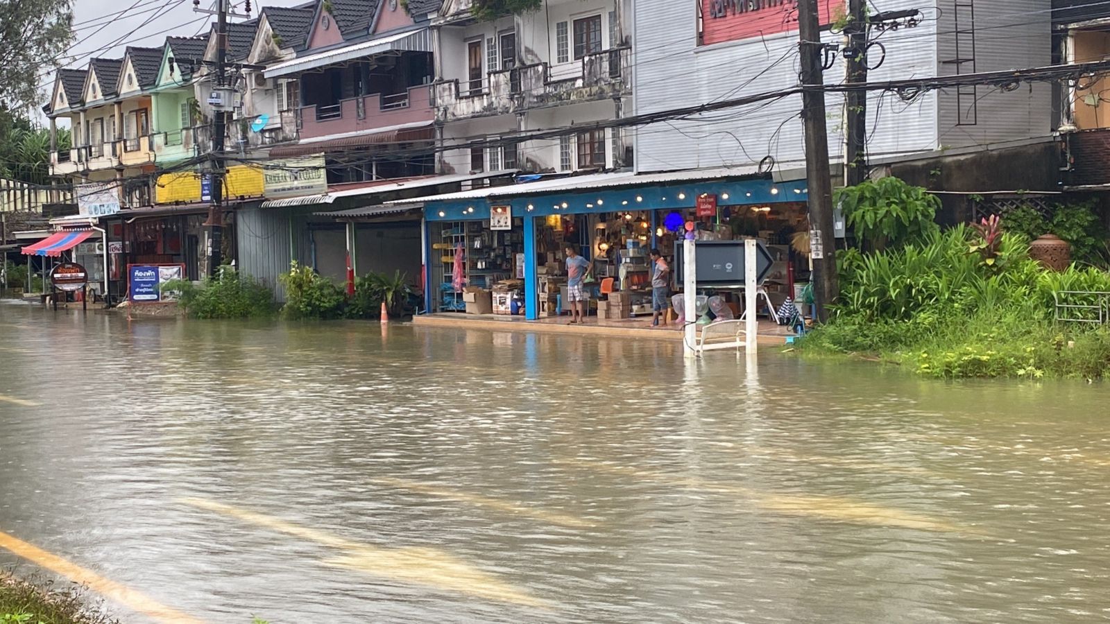 เมื่อเวลา 09.00 น.วันที่ 19 ตุลา คม 2565 ผู้สื่อข่าวรายงานว่าหลังจากมีฝนตกหนักในพื้นที่จังหวัดพังงาอย่างต่อเนื่อง ทำให้น้ำไหลหลากเข้าท่วมถนนเพชรเกษมสายตะกั่วป่า-เขาหลัก จากบริเวณหน้าตลาดสด บขส.บางเนียง หมู่ 3 ต.คึกคัก อ.ตะกั่วป่า จ.พังงา จนถึงหน้าศูนย์การแพทย์เขาหลักระยะทางเกือบ1กิโลเมตร ทำให้รถจักรยานยนต์และรถเล็ก ไม่สามารถสัญจรไปมาได้ ทางเจ้าหน้าที่ สภ.เขาหลัก เทศบาลตำบลคึกคักและหน่วยกู้ภัยในพื้นที่ ต้องจัดการจราจรให้ใช้ช่องทางอีกฝั่งที่น้ำไม่ท่วมให้รถวิ่งสวนทางกัน ขณะที่ร้านค้าริมถนน ต้องเร่งขนของขึ้นที่สูง
