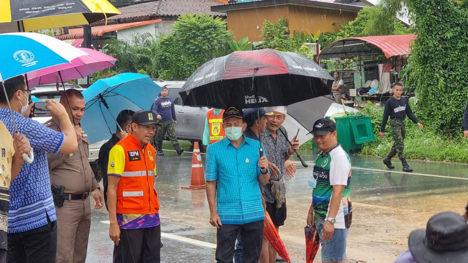 ล่าสุดนายเอกรัฐ หลีเส็น ผู้ว่าราชการจังหวัดพังงา ลงพื้นที่สั่งการให้หน่วยงานที่เกี่ยวเข้าดำเนินการให้ความช่วยเหลือแก้ไขปัญหาเบื้องต้นอย่างเร่งด่วน และพบว่าปัญหาเกิดจากน้ำที่ไหลหลากมาจากพื้นที่สูงระบายไม่ทัน เนื่องจากระบบระบายของถนนไม่ดี ทำให้เกาะกลางถนนกลายเป็นตัวกั้นน้ำ ส่งผลระดับน้ำท่วมเพิ่มสูงขึ้นเรื่อยๆ ใช้เครื่องสูบน้ำช่วยระบายไม่ทัน จึงสั่งการทุบเกาะกลางถนนเป็นช่องช่วยเร่งระบายน้ำออกจากพื้นที่เพื่อแก้ปัญหาเป็นการชั่วคราว ก่อนจะเรียกหน่วยงานที่เกี่ยวข้องมาหารือแก้ปัญหาให้เป็นการถาวรต่อไป