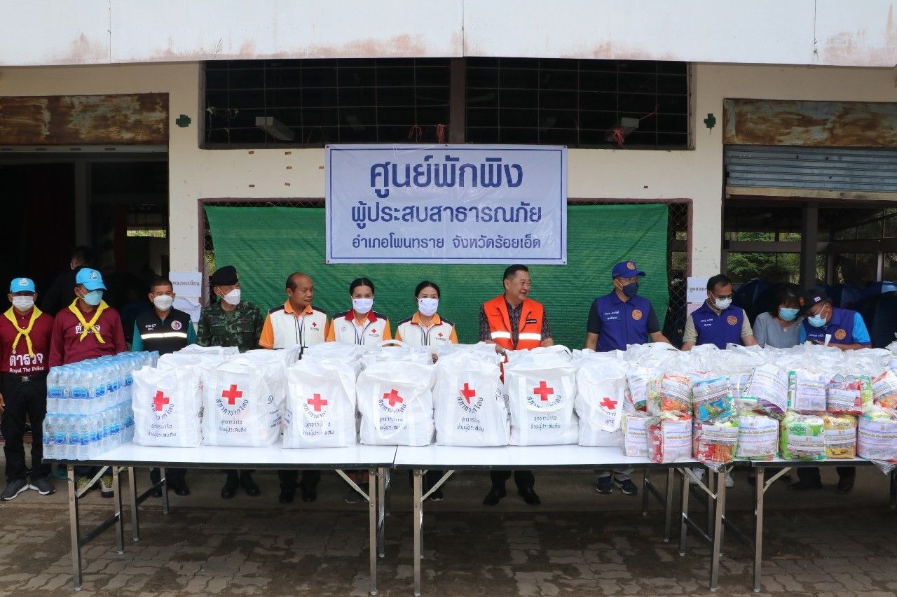 ร้อยเอ็ด-ที่ว่าการอำเภอโพนทราย นายทรงพล ใจกริ่ม ผู้ว่าราชการจังหวัดร้อยเอ็ด รับมอบเรือและถุงยังชีพช่วยเหลือผู้ประสบภัย เพื่อมอบให้แก่ ศูนย์พักพิงผู้ประสบสาธารณภัย อำเภอโพนทราย