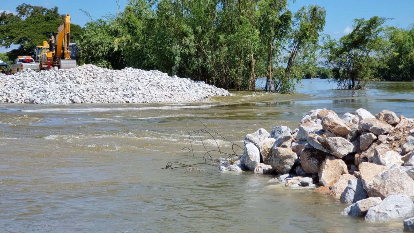 สำหรับความคืบหน้าการซ่อมแซมพนังกั้นน้ำที่ขาดล่าสุดมีรายงานว่า เจ้าหน้าที่สามารถซ่อมได้ระยะทางประมาณ 25 เมตร เหลือระยะทางทั้งสิ้น 25 เมตร จากระยะทางขาด 50 เมตร คิดเป็นความคืบหน้า 50% และยังคงเร่งปฏิบัติงานตลอด 24 ชั่วโมง เพื่อดำเนินการซ่อมแซมให้แล้วเสร็จโดยเร็วที่สุด
