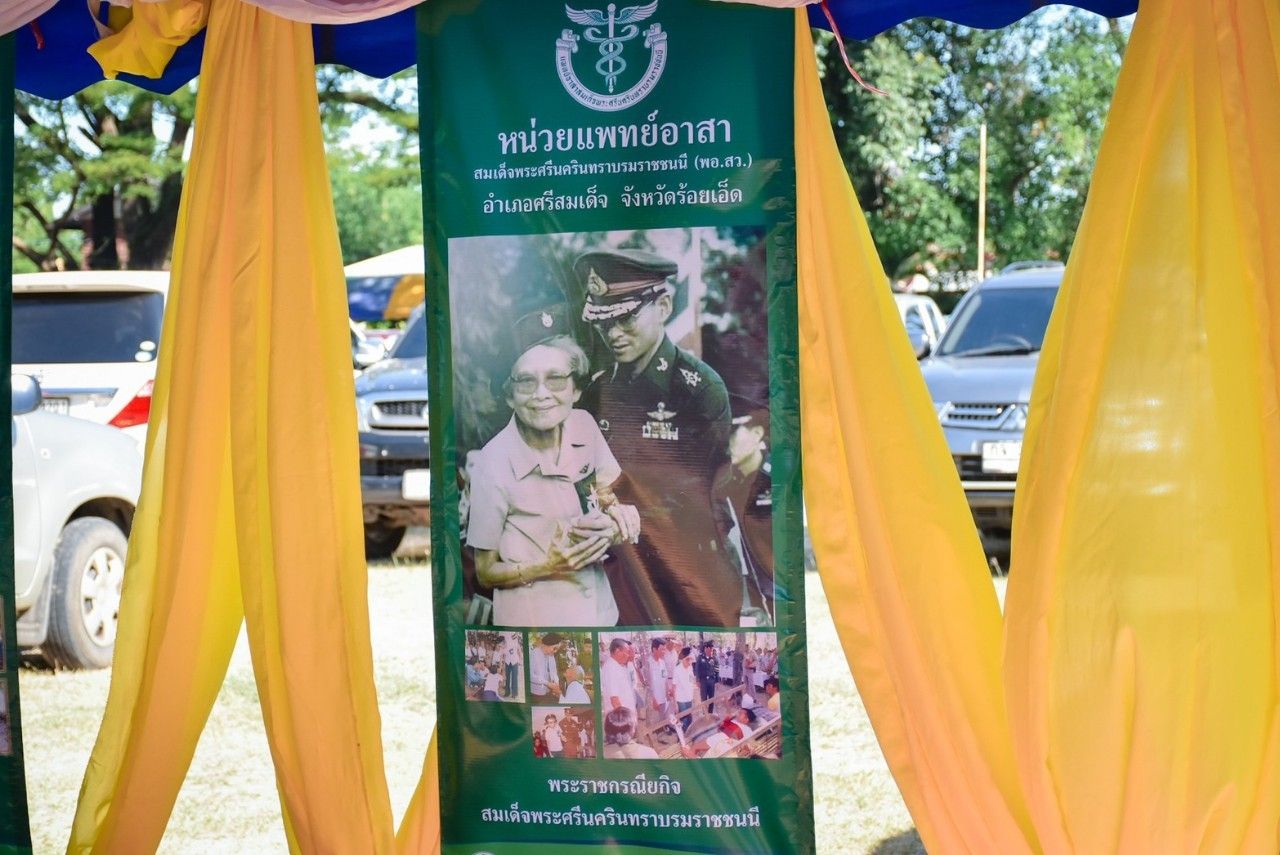 ทั้งนี้ จังหวัดร้อยเอ็ด ได้รับพระกรุณาโปรดเกล้าฯพระราชทาน พระราชาอนุญาตให้เป็นจังหวัด พอ.สว. ในลำดับที่ 53 เมื่อปี 2554 เป็นต้นมา โดยได้จัดกิจกรรมหน่วยแพทย์เคลื่อนที่ พอ.สว. เดือนละ 1 ครั้ง พร้อมกำหนดออกหน่วยบริการหมุนเวียนไปทุกอำเภอของจังหวัดร้อยเอ็ดอย่างต่อเนื่อง เพื่อสืบสานพระปณิธานในสมเด็จพระศรีนครินทราบรมราชชนนี ที่ทรงห่วงใยสุขภาพอนามัยปวงชนชาวไทยในพื้นที่ห่างไกล สำหรับกิจกรรมในวันนี้ หน่วยแพทย์เคลื่อนที่ พอ.สว. ได้ตรวจคัดกรองผู้ป่วย และให้บริการทางการแพทย์แก่ประชาชนในพื้นที่ ให้ความรู้ด้านการดูแลรักษาสุขภาพอนามัย ให้บริการตรวจรักษาโรคทั่วไป ออกหน่วยทันตกรรมเคลื่อนที่ การคัดกรองมะเร็งเต้านม บริการคลินิกแพทย์แผนไทย และให้บริการทำหมันสุนัข-แมว จากปศุสัตว์จังหวัดร้อยเอ็ด โอกาสนี้ ผู้ว่าราชการจังหวัดร้อยเอ็ด พร้อมด้วย ส่วนราชการ ได้มอบเวชภัณฑ์ จำนวน 15 ชุด และ พันธุ์ปลาสวาย จำนวน 50 ถุง ให้แก่ประชาชนชาวเกษตรกร โดยมีผู้นำชุมชน เป็นผู้แทนรับมอบ