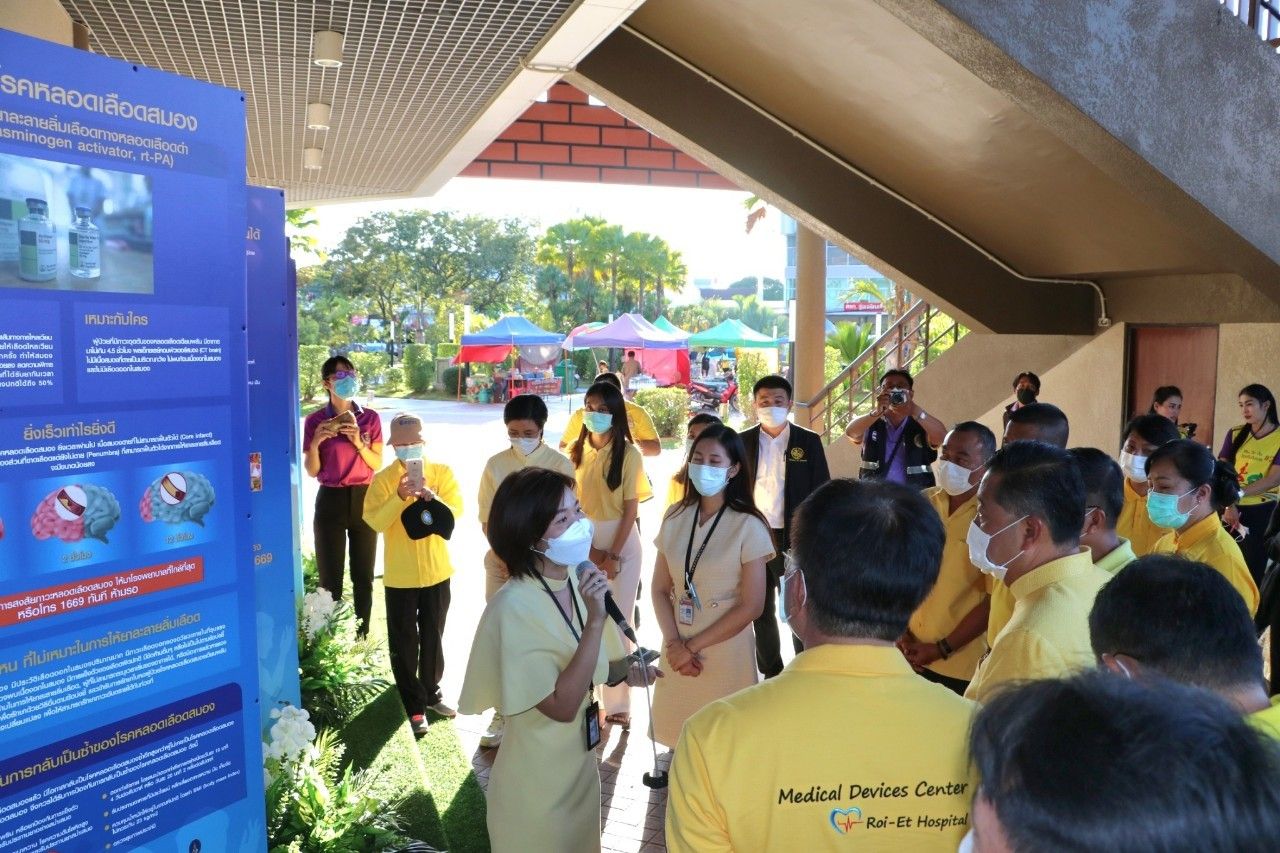 วันศุกร์ที่ 21 ตุลาคม 2565 เวลา 16.00 น. นายทรงพล ใจกริ่ม โดยมี นายสนอง ดลประสิทธิ์ รองผู้ว่าราชการจังหวัดร้อยเอ็ด ,นายแพทย์สาธารณสุขจังหวัดร้อยเอ็ด พร้อมด้วย หัวหน้าส่วนราชการ และประชาชน เข้าร่วมงาน โดยกิจกรรมจัดขึ้น เพื่อเฉลิมพระเกียรติพระบาทสมเด็จพระเจ้าอยู่หัว และสมเด็จพระนางเจ้าฯ พระบรมราชินี ที่ทรงเป็นดั่งแสงนำใจของประชาชนไทย และทรงเป็นแบบอย่างแก่ประชาชนชาวไทยในการรักษาสุขภาพ และการออกกำลังกาย ให้ประชาชนชาวไทยทั่วประเทศ ได้ตระหนักถึงความสำคัญของการป้องกันโรคหลอดเลือดสมอง ด้วยการดำเนินงานจัดนิทรรศการเฉลิมพระเกียรติเชิงรุกในพื้นที่ห่างไกลทั่วประเทศ ซึ่งจะเป็นการช่วยลดค่าใช้จ่ายการรักษาและลดภาระของปัญหาโรคเรื้อรัง
