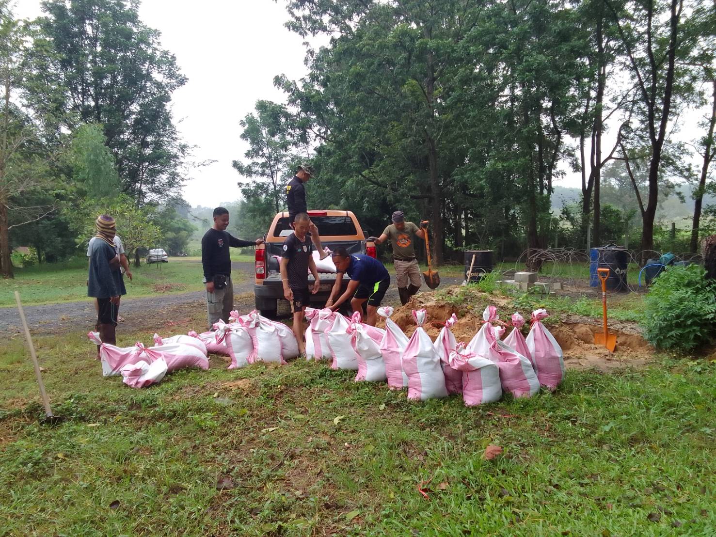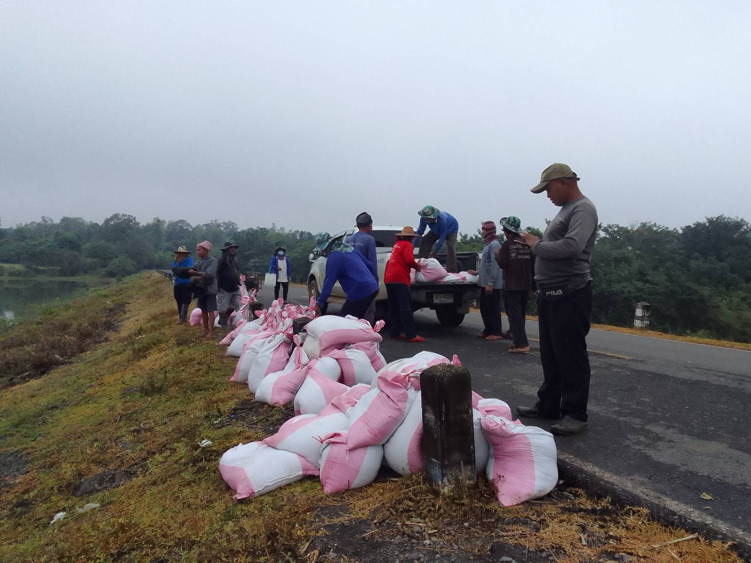 เมื่อวันที่ 22 ตุลาคม 2565 ที่บริเวณทางระบายน้ำล้น(Spillway)อ่างเก็บน้ำห้วยด่านไอ ตำบลละลาย อำเภอกันทรลักษ์ จังหวัดศรีสะเกษ นายจำรัส สวนจันทร์ ผู้อำนวยการโครงการชลประทานศรีสะเกษ นายกัณธวัตร สงวนซื่อ หัวหน้าฝ่ายส่งน้ำและบำรุงรักษาที่ 5 ร่วมกับเกษตรกรกลุ่มผู้ใช้น้ำชลประทานโครงการชลประทานศรีสะเกษ ได้ร่วมกันกรอกและเสริมกระสอบทรายความสูง 50 เซนติเมตร เพื่อเพิ่มศักยภาพการเก็บกักน้ำของอ่างเก็บน้ำให้มากยิ่งขึ้น ทั้งนี้อ่างเก็บน้ำดังกล่าวมีความจุ 8.03 ล้านลูกบาศก์เมตร ปัจจุบันเก็บกักได้ 8.526 ล้านลูกบาศก์เมตร คิดเป็น 106.22% และจากการเสริมกระสอบทรายความสูง 50 เซนติเมตรดังกล่าวนั้น จะสามารถเพิ่มปริมาณน้ำเก็บกักได้ประมาณ 800,000 ลูกบาศก์เมตร ความมั่นคงแข็งแรงของเขื่อน(Dam safety)ปกติ พื้นที่การเกษตรเพิ่มมากขึ้นกว่า 1,200 ไร่ จากเดิมมีพื้นที่ชลประทาน 4,500 ไร่ และราษฎรมีน้ำเพื่อการอุปโภคบริโภค ในช่วงฤดูแล้งปี 2566 ได้มากยิ่งขึ้น