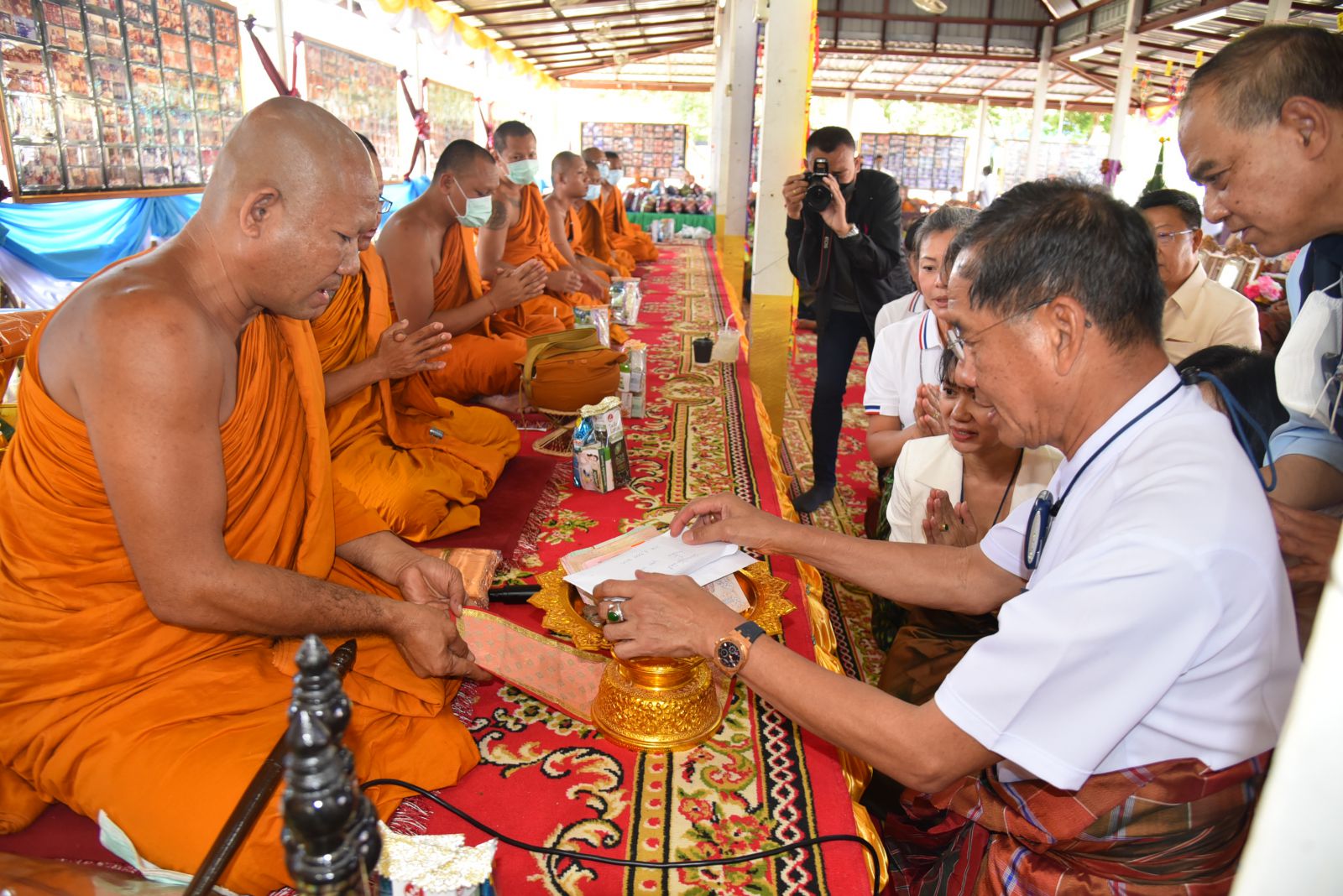 ศรีสะเกษ-พระครูปลัดสุวัฒนวิสุทธิสารคุณ นำนักธุรกิจกรุงเทพมหานครถวายกฐินสามัคคี 3 วัด ที่ตำบลโพธิ์กระสังข์