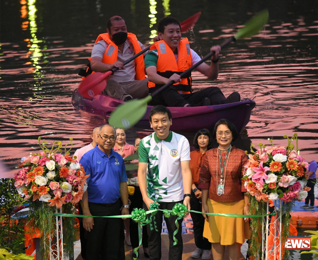 กรุงเทพฯ-รองผู้ว่าฯศานนท์เปิดกิจกรรมทางน้ำ พายเรือคายัค จักรยานน้ำ และซัพบอร์ด ที่บึงน้ำ สวนลุมพินี ส่งเสริมการออกกำลังกาย