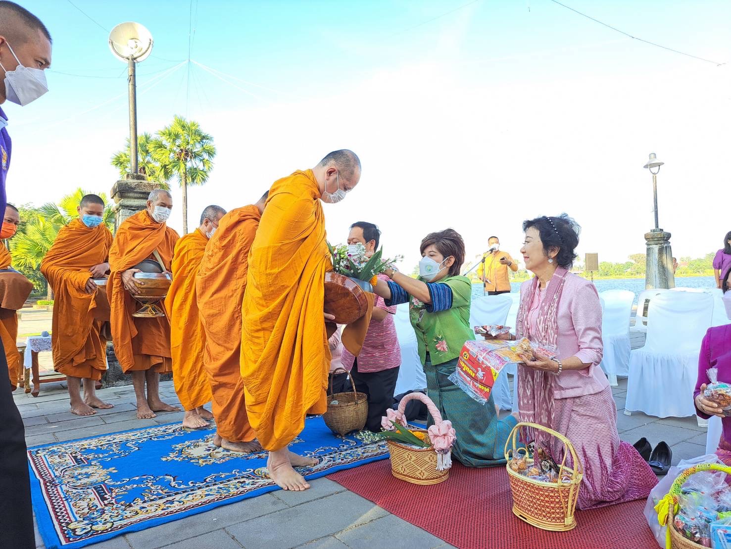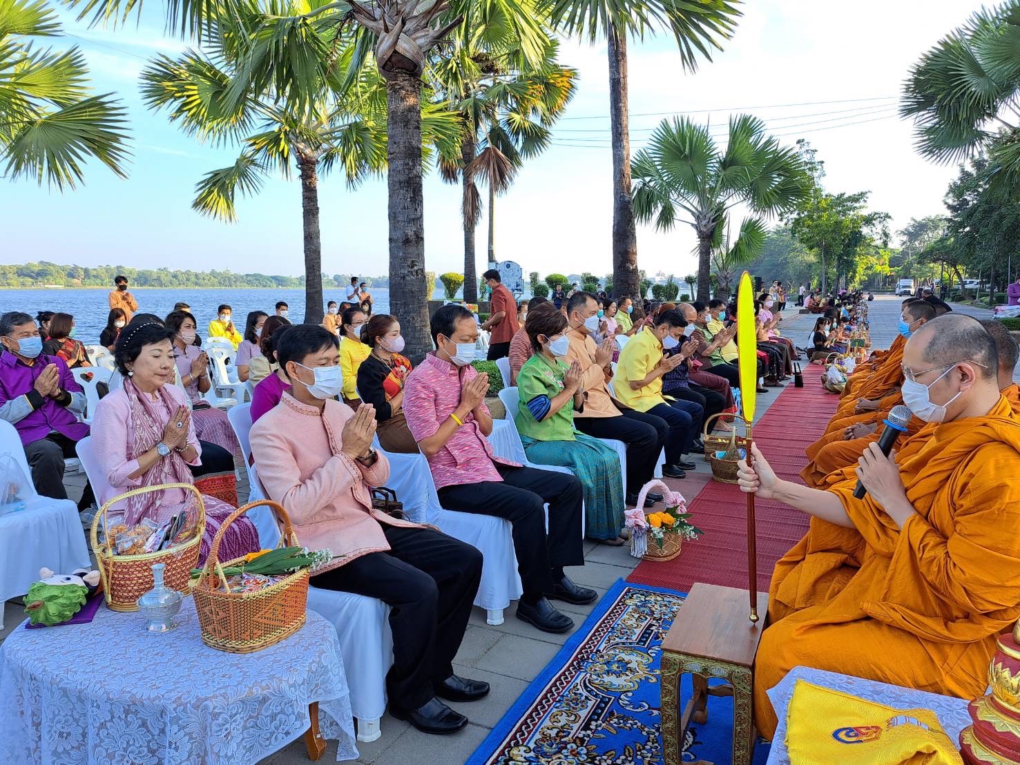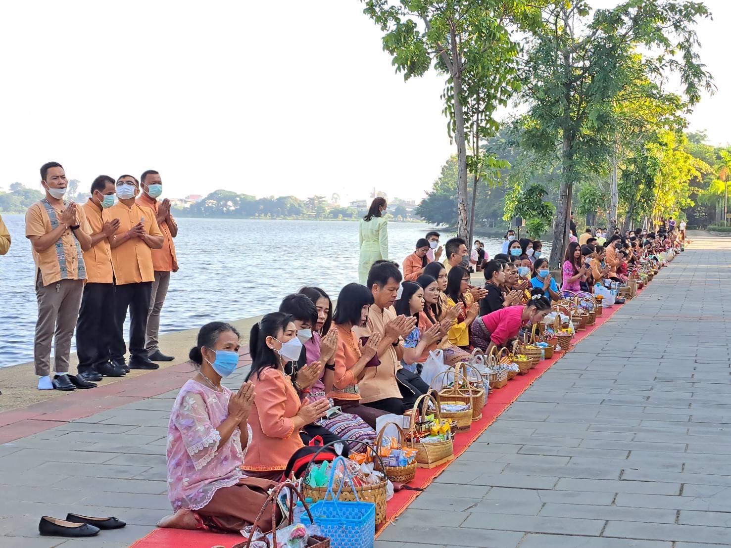 วัดหลวงสุมังคลาราม พระอารามหลวง เป็นประธานฝ่ายสงฆ์ นำพระสงฆ์จำนวน 9 รูป ออกรับบิฑบาตจากพุทธศาสนิกชนชาวจังหวัดศรีสะเกษ ภายในงานมีการจำหน่ายสินค้า OTOP จังหวัดศรีสะเกษ จากกลุ่มผู้ประกอบการประกอบด้วย กลุ่มผู้ผลิตผ้าแส่ว ผ้าทอมือ ผ้าพื้นเมือง อาหารพื้นถิ่น การแสดงศิลปวัฒนธรรมพื้นถิ่น และผลิตภัณฑ์กาแฟโรบัสต้าศรีสะเกษ ทุเรียนภูเขาไฟศรีสะเกษ มียอดจำหน่ายประมาณ 103,250 บาท ทั้งนี้เพื่อเป็นการสนับสนุนและส่งเสริมการใช้จ่ายและการกระตุ้นเศรษฐกิจ กระจายรายได้ ลดความเหลื่อมล้ำ เสริมสร้างความเข้มแข็ง และเจริญเติบโตของเศรษฐกิจฐานราก และเพื่อส่งเสริมให้ผู้เข้าร่วมกิจกรรมแต่งกายด้วยผ้าไทยและผ้าพื้นเมือง รักษาศิลปวัฒนธรรมจังหวัดศรีสะเกษ รวมทั้งใช้วัสดุจากธรรมชาติท้องถิ่น ด้วย
